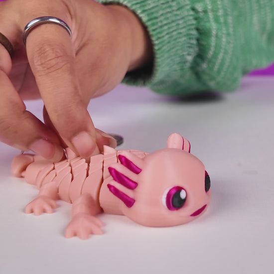 Say hello to Ashley the Axolotl, the cheerful amphibian from the Mesh Buddies collection! This 3D-printed, fully articulated keychain features a charming blend of soft pink and vibrant accent colours, capturing Ashley’s playful and friendly personality. Her flexible mesh body wiggles and moves, making her both a delightful fidget toy and a cute collectible accessory.