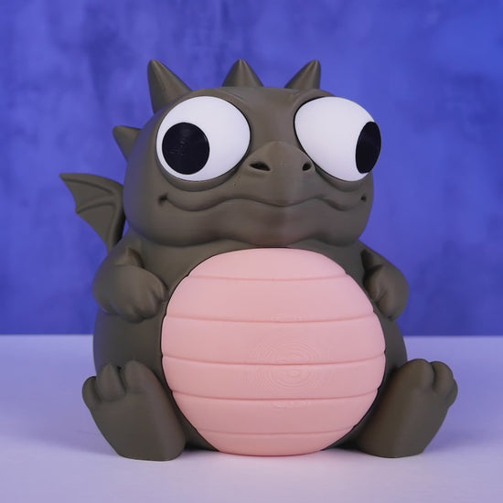 Its chunky, rounded body and smooth, high-quality finish give it a friendly cartoon style, while short little arms, a long tail, and playful ridges along its back make it instantly recognizable as your very own money-guarding dino. Large, expressive eyes add to its charm, giving it a goofy-yet-loyal look.