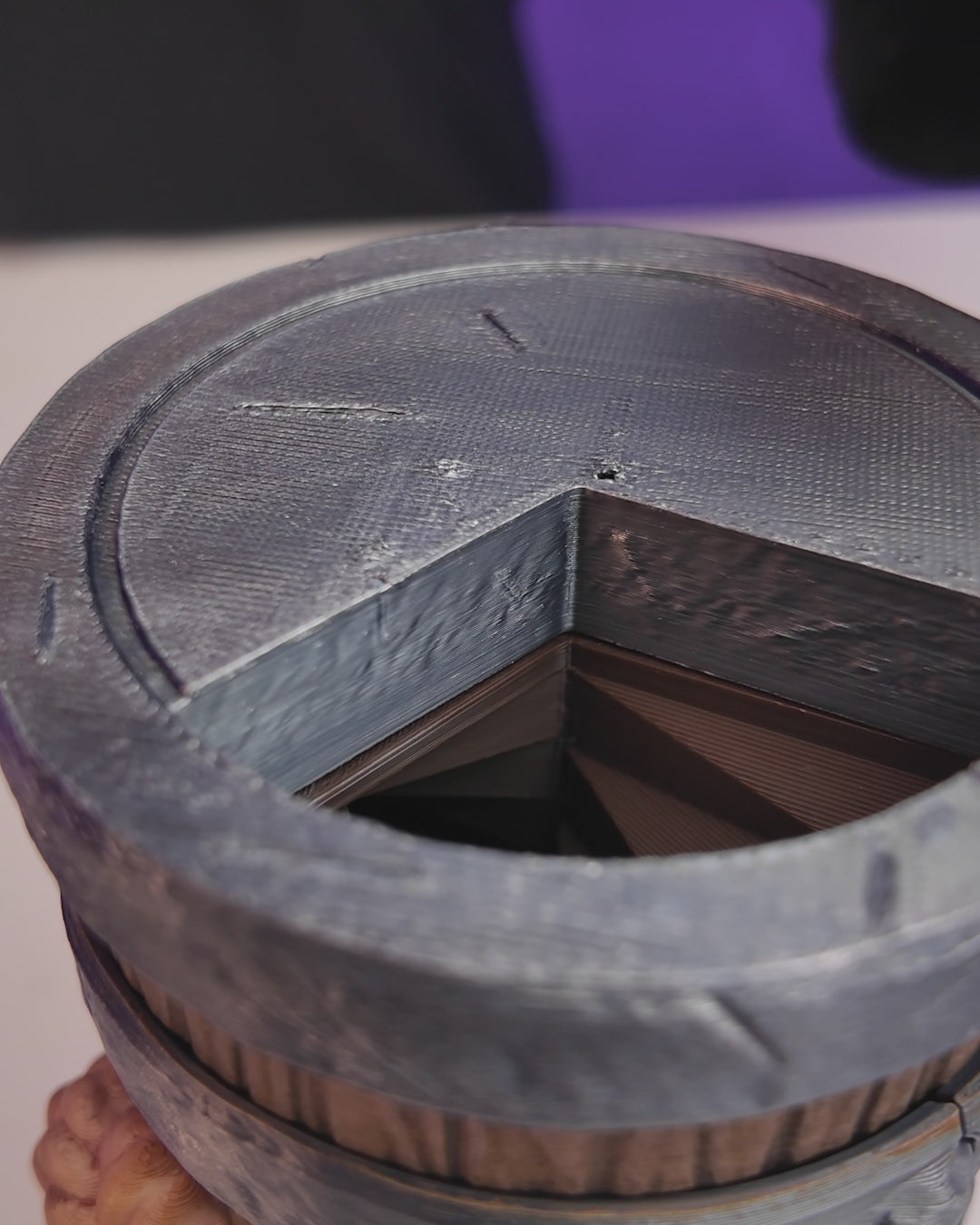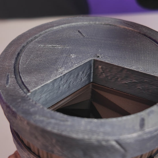 Crafted through 3D printing, the layered textures mimic aged wood, weathered metal, and twisted rope details, highlighting the character and charm of handmade tabletop gear. As part of the Roll Playing collection, the Keg of Fate transforms a simple dice tower into a story-driven prop—perfect for gamblers, bards, and adventurers who trust their luck to fate.