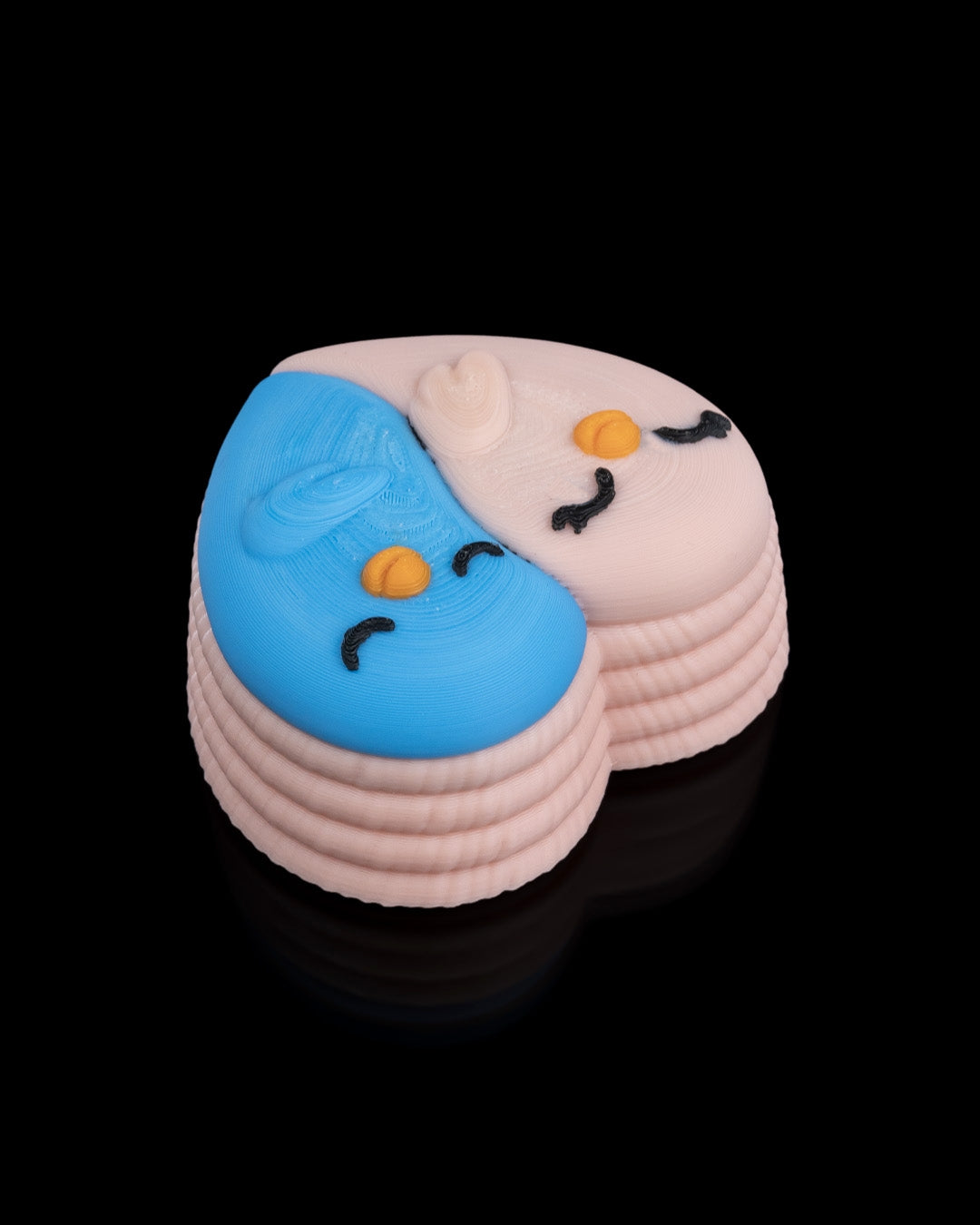 Measuring 4 cm tall, 8 cm long, and 9 cm wide, this compact yet expressive design opens to reveal a smooth, heart-shaped compartment—perfect for storing rings, earrings, keepsakes, or tiny tokens of affection. Lightweight yet durable, it carries the cosy, handcrafted texture that makes 3D-printed pieces so uniquely delightful.