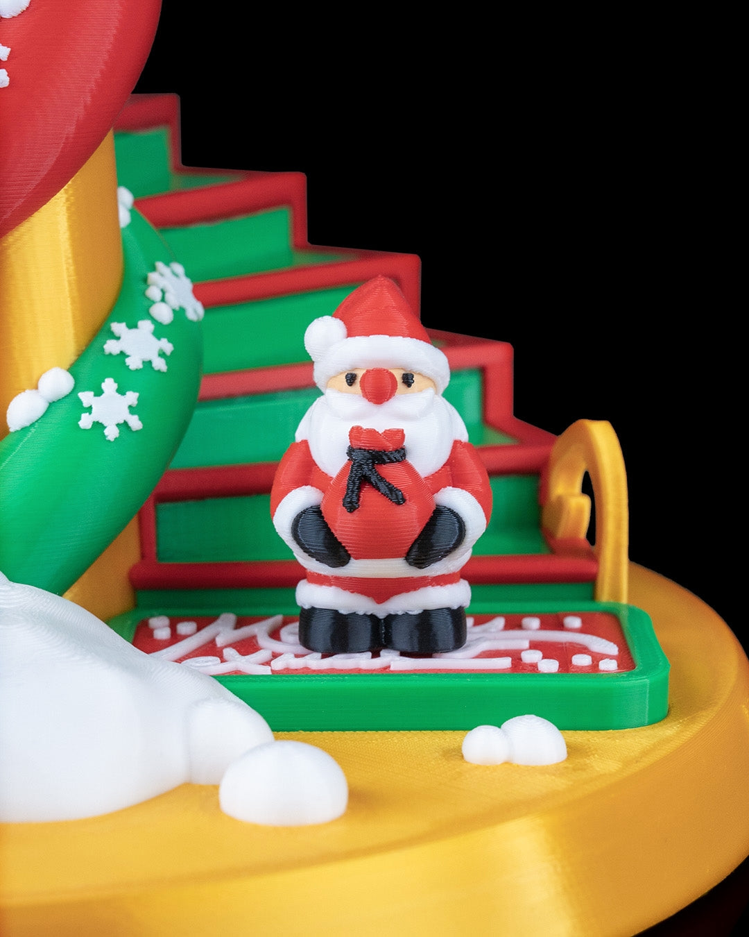 Meet the showpiece that turns December into a daily adventure. A golden star crowns a candy-stripe spiral while numbered steps curl skyward. Santa climbs one step each day, working his way to the top just in time for Christmas. The scene sits on a snowy base with playful details that pop from every angle.