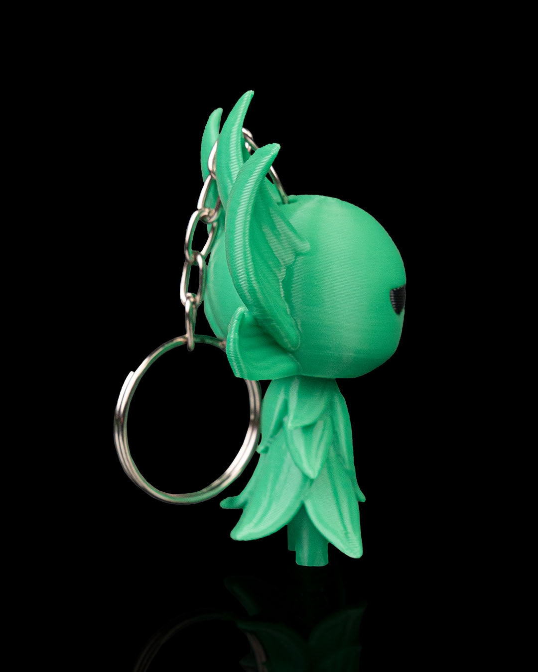 Carefully 3D-printed and finished in delicate shades of green, Sylvi the Leaf Spirit stands around 7 cm tall, capturing the elegance of nature in miniature form. With flowing leaf-inspired details and a serene expression, Sylvi brings calm and renewal wherever they travel — from your keys and bags to your favourite shelf or workspace.