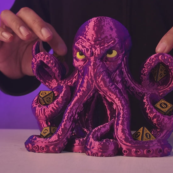 Each tentacle is thoughtfully shaped to hold individual dice, turning storage into a visual display while keeping your set close at hand during play (dice shown for display purposes only and are not included). Layered textures, suction-cup detailing, and organic curves showcase the strengths of 3D printing, giving the piece a lively, tactile presence.