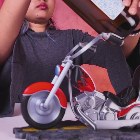 Rev up your home bar with this bold and eye-catching motorcycle wine bottle holder — the perfect fusion of rebel spirit and refined taste. Shaped like a classic chopper, this handcrafted display cradles your favourite bottle of wine as if it's riding off into the sunset. Whether you're a biker, wine lover, or both, this piece adds instant attitude and charm to any room.