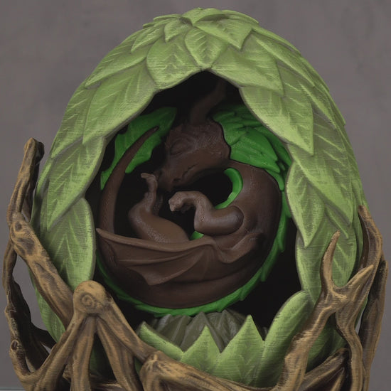 When illuminated, the egg glows warmly to reveal a peaceful dragonling nestled within the roots—a perfect accent for nature lovers, fantasy fans, and cosy cottage core spaces.